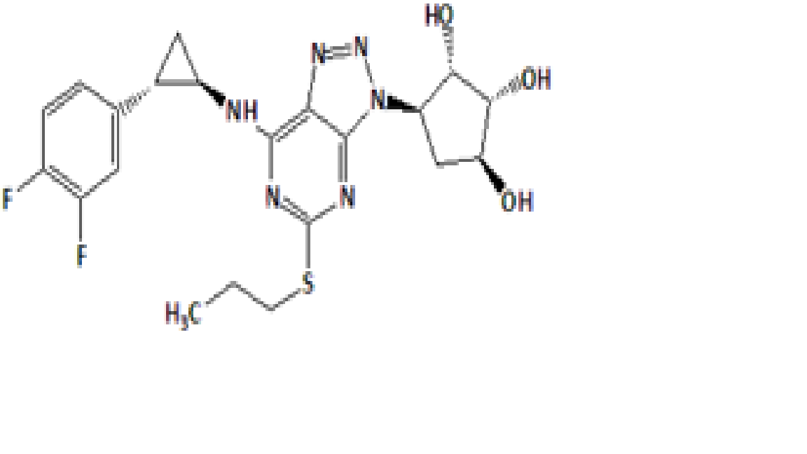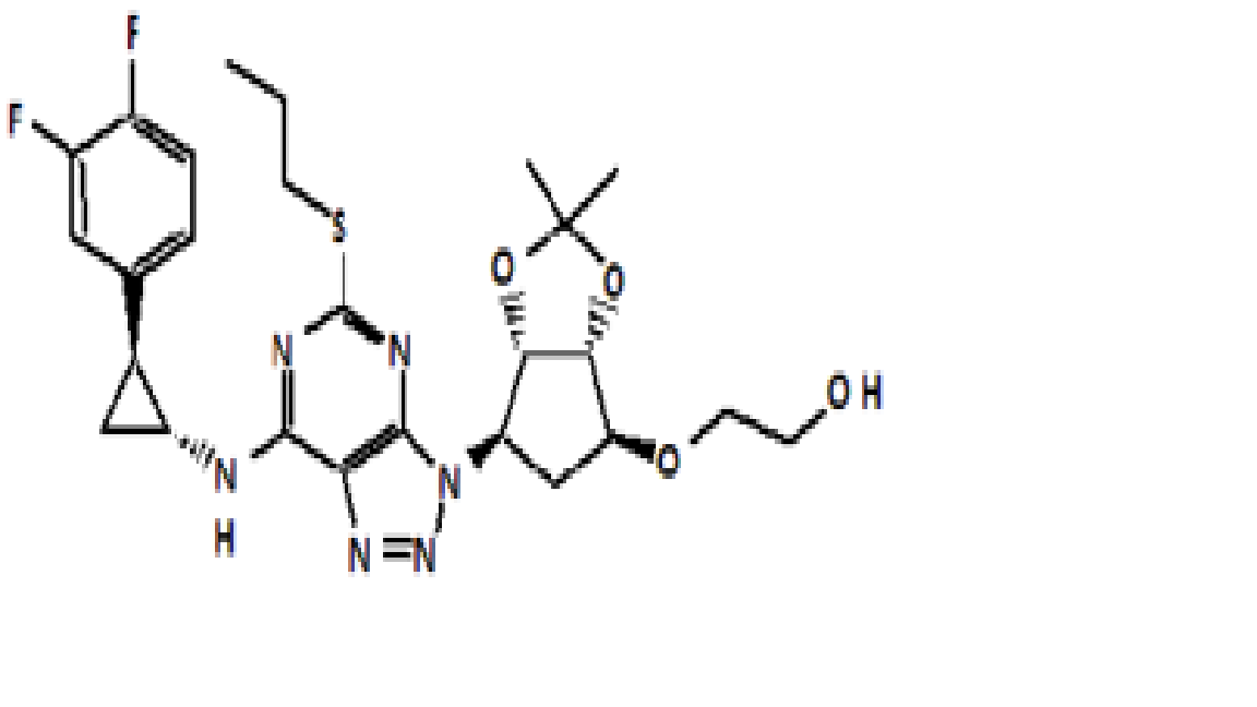 Synonyms: 2-((3aR,4S,6S,6aS)-6-(7-((1R,2S)-2-(3,4-difluorophenyl)cyclopropylamino)-5-(propylthio)-3H-[1,2,3]triazolo[4,5-d]pyrimidin-3-yl)-2,2-dimethyltetrahydro-3aH-cyclopenta[d][1,3]dioxo-4-yloxy)ethanol.